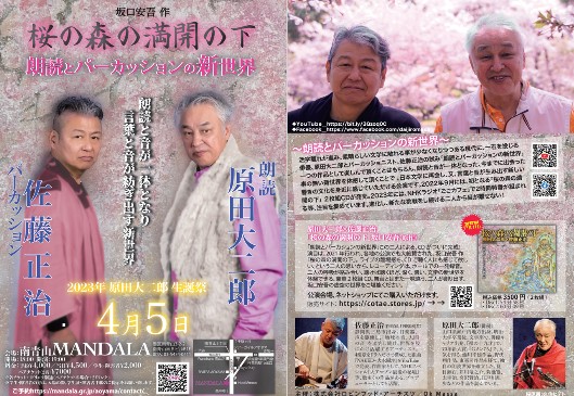 俳優「原田大二郎」とパーカッショニスト「佐藤正治」がくんずほぐれずの新たなる挑戦!坂口安吾の描く「桜の森の満開の下」の果てしない空虚が舞台にひろがる!